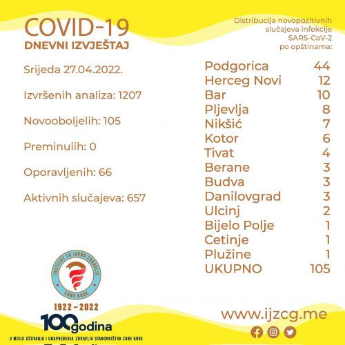 NaslovnicaDRUŠTVOIJZCG: Još 105 novozaraženih kovidom DRUŠTVOPREPORUKA IJZCG: Još 105 novozaraženih kovidom 28.04.2022. u 15:23 Dijeliti FacebookTwitterPinterestWhatsApp Tagsinstitut za javno zdravlje crne gorekorona virus Dijeliti FacebookTwitterPinterestWhatsApp Prethodni članakEKIPE NA TERENU: Požar velikih razmjera na otpadu ka Tuzima, čuju se i eksplozijeNaredni članakPODGORICA: Radno vrijeme pijaca tokom praznika POVEZANI TEKSTOVI PREPORUKA EVROPSKO PRVENSTVO: Vaterpolisti Crne Gore savladali Srbiju 20.01.2026. u 22:00 PREPORUKA EVROPSKO PRVENSTVO: Rukometaši Crne Gore poraženi od Švajcarske 20.01.2026. u 19:35 DRUŠTVO METEO: Sjutra oblačno, do 11 stepeni 20.01.2026. u 18:08 POPULARNO EVROPSKO PRVENSTVO: Vaterpolisti Crne Gore savladali Srbiju 20.01.2026. u 22:00 EVROPSKO PRVENSTVO: Rukometaši Crne Gore poraženi od Švajcarske 20.01.2026. u 19:35 METEO: Sjutra oblačno, do 11 stepeni 20.01.2026. u 18:08 PODGORICA: Jedna osoba povrijeđena u saobraćaju 20.01.2026. u 15:05 Učitati više