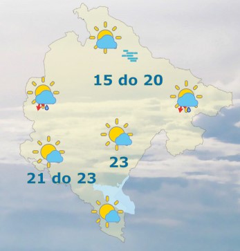Danas će u Crnoj Gori biti promjenljivo oblačno, sa dužim sunčanim intervalima. Sredinom dana i poslijepodne, ponegdje u kontinentalnim predjelima i planinskom zaleđu Boke ima uslova za kratkotrajno slabu kišu ili pljusak i grmljavinu. Vjetar slab do umjeren, promjenljivog smjera. Najviša dnevna temperatura vazduha 15 do 23 stepena, saopšteno je iz Zavoda za hidrometeorologiju.
