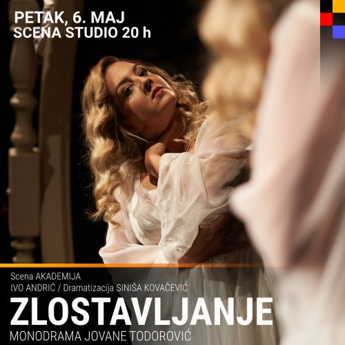 Monodrama „Zlostavljanje“ Iva Andrića, u dramatizaciji Siniše Kovačevića i izvođenju Jovane Todorović, biće izvedena u petak 6. maja na Sceni Studio Crnogorskog narodnog pozorišta u 20 sati, saopšteno je iz PR službe CNP-a.