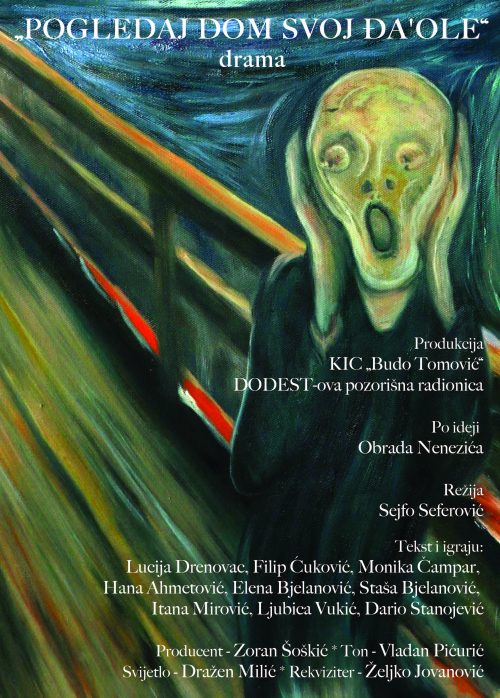 Nova predstava Pozorišne radionice DODEST „Pogledaj dom svoj đa'ole“, nastala po ideji pisca i dramaturga Obrada Nenezića i u režiji Sejfa Sefrovića biće premijerno izvedena u utorak, 24. maja, na velikoj sceni KIC-a ,,Budo Tomović” u 19 sati, saopšteno je iz PR službe KIC-a.