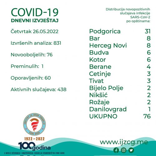 NaslovnicaDRUŠTVOIJZCG: Još 76 novozaraženih kovidom, jedna osoba preminula DRUŠTVOPREPORUKA IJZCG: Još 76 novozaraženih kovidom, jedna osoba preminula 27.05.2022. u 15:09 Dijeliti FacebookTwitterPinterestWhatsApp Tagsinstitut za javno zdravlje crne gorekorona virus Dijeliti FacebookTwitterPinterestWhatsApp Prethodni članakCEDIS: Zbog radova na mreži, plan isključenja struje za 29, 30. i 31. majNaredni članakNAKON VIŠEDNEVNE PRETRAGE: Ronioci pronašli tijelo nestalog ribara POVEZANI TEKSTOVI PREPORUKA “LAVICE” SU U ČETVRTFINALU: Njemačka savladala Španiju 6.12.2025. u 19:31 PREPORUKA “LAVICE” SAVLADALE SRBIJU: Crna Gora na korak od četvrtfinala Svjetskog prvenstva 6.12.2025. u 17:03 DRUŠTVO RIJEKA: Mladić ubio djevojku, tijelo u zgradi pronašao Nepalac 6.12.2025. u 15:57 POPULARNO “LAVICE” SU U ČETVRTFINALU: Njemačka savladala Španiju 6.12.2025. u 19:31 “LAVICE” SAVLADALE SRBIJU: Crna Gora na korak od četvrtfinala Svjetskog prvenstva 6.12.2025. u 17:03 RIJEKA: Mladić ubio djevojku, tijelo u zgradi pronašao Nepalac 6.12.2025. u 15:57 NAKON ODLUKE O SMJENI GORANA JOKIĆA: Građani Cetinja obustavljaju blokade 6.12.2025. u 15:39 Učitati više