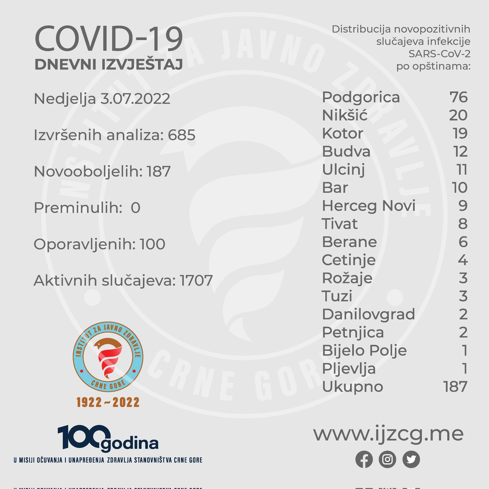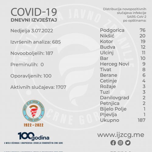 NaslovnicaDRUŠTVOIJZCG: Još 187 novozaraženih kovidom DRUŠTVOPREPORUKA IJZCG: Još 187 novozaraženih kovidom 4.07.2022. u 15:09 Dijeliti FacebookTwitterPinterestWhatsApp Tagsinstitut za javno zdravlje crne gorekorona virus Dijeliti FacebookTwitterPinterestWhatsApp Prethodni članakCEDIS: U srijedu, zbog radova na mreži, višesatna isključenjaNaredni članakGLAVNI GRAD: Školski pribor za prvake, konkurs za dodjelu sredstava traje do 4. avgusta POVEZANI TEKSTOVI DRUŠTVO VRIJEME: Sunčano, temperatura do 25 stepeni 2.11.2025. u 8:49 PREPORUKA ABA LIGA: Pobjeda Budućnost Volija 1.11.2025. u 19:34 ART CNP: Velika nagrada Raduloviću i Liješeviću, večeras nastup Akademije Milanske skale 1.11.2025. u 18:05 POPULARNO Prognoza za period od 03. do 10. novembra 2.11.2025. u 9:01 VRIJEME: Sunčano, temperatura do 25 stepeni 2.11.2025. u 8:49 CRNOGORSKA NEDJELJA MODE: Humanost obilježila kraj 37. izdanja 2.11.2025. u 7:32 ABA LIGA: Pobjeda Budućnost Volija 1.11.2025. u 19:34 Učitati više