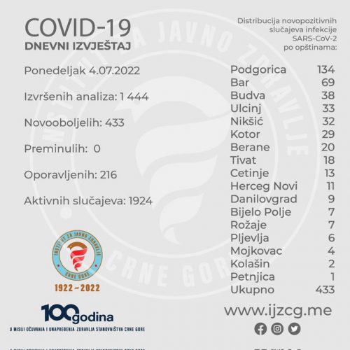 NaslovnicaDRUŠTVOIJZCG: Još 433 novozaražena kovidom DRUŠTVOPREPORUKA IJZCG: Još 433 novozaražena kovidom 5.07.2022. u 14:59 Dijeliti FacebookTwitterPinterestWhatsApp Tagsinstitut za javno zdravlje crne gorekorona virus Dijeliti FacebookTwitterPinterestWhatsApp Prethodni članakMINISTARSTVO KULTURE I MEDIJA: Nikolaidis, Tomašević i Gačević dobitnici Trinaestojulske nagradeNaredni članakCEDIS: U četvrtak, zbog radova na mreži, višesatna isključenja POVEZANI TEKSTOVI MAGAZIN ALABAR: Ukoliko radite ono što volite, postajete umjetnik u svom poslu 23.01.2026. u 8:11 DRUŠTVO OD TRAGEDIJE NA BIOČU PROŠLO 20 GODINA: 47 stradalih, više od 200 povrijeđenih 23.01.2026. u 7:01 PREPORUKA EP U VATERPOLU: ,,Ajkule” pobijedile Rumuniju u meču za sedmo mjesto na šampionatu 22.01.2026. u 19:17 POPULARNO ALABAR: Ukoliko radite ono što volite, postajete umjetnik u svom poslu 23.01.2026. u 8:11 OD TRAGEDIJE NA BIOČU PROŠLO 20 GODINA: 47 stradalih, više od 200 povrijeđenih 23.01.2026. u 7:01 EP U VATERPOLU: ,,Ajkule” pobijedile Rumuniju u meču za sedmo mjesto na šampionatu 22.01.2026. u 19:17 BIJELO POLJE: Obilježena godišnjica od željezničke nesreće na Bioču 22.01.2026. u 18:21 Učitati više