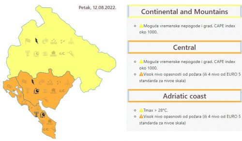 Žuti meteoalarm na snazi je u kontinentalnim i planinskim predjelima Crne Gore, a narandžasti u centralnim i južnim.