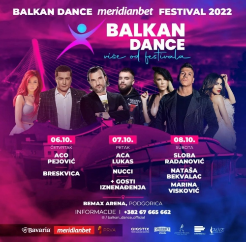 – Pažljivo osluškujući potrebe i želje naše publike, ove jeseni najavljen je trodnevni spektakal koji će prirediti najpoznatija imena domaće muzike. Za ovaj nezaboravni događaj koji je planiran u periodu od 06. 10. do 09. 10. na sceni glavnog grada možete očekivati: Aca Pejovića, NatašuBekvalac, Aca Lukasa, Breskvicu, Editu, Sloba Radanovića, Marinu Visković i mnogobrojne goste iznenađenja – navodi se u saopštenju Balkan Dancea.
