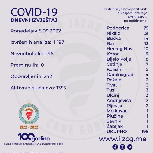 NaslovnicaDRUŠTVOIJZCG: Još 196 novozaraženih kovidom DRUŠTVOPREPORUKA IJZCG: Još 196 novozaraženih kovidom 6.09.2022. u 14:53 Dijeliti FacebookTwitterPinterestWhatsApp Tagsinstitut za javno zdravlje crne gorekorona virus Dijeliti FacebookTwitterPinterestWhatsApp Prethodni članakALIGRUDIĆ: Penzioneri sa najnižim penzijama u oktobru primiće 450 eura razlikeNaredni članakCEDIS: U četvrtak, zbog radova na mreži, višesatna isključenja POVEZANI TEKSTOVI ART ART: Moor, Crystal i Mahfood prvi gosti 20. izdanja HSF-a 25.02.2026. u 15:41 ART POVODOM 9. ROĐENDANA KIC POP HORA: U petak „150. muzički zagrljaj“ 25.02.2026. u 14:08 ART CNP: „Gidionov čvor“ večeras, ulaznice rasprodate 25.02.2026. u 13:55 POPULARNO ART: Moor, Crystal i Mahfood prvi gosti 20. izdanja HSF-a 25.02.2026. u 15:41 NAJPOZNATIJI PRODAVAC U TURSKOJ: Redovi za sliku sa Alperom 25.02.2026. u 14:21 POVODOM 9. ROĐENDANA KIC POP HORA: U petak „150. muzički zagrljaj“ 25.02.2026. u 14:08 CNP: „Gidionov čvor“ večeras, ulaznice rasprodate 25.02.2026. u 13:55 Učitati više
