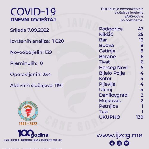 NaslovnicaDRUŠTVOIJZCG: Još 139 novozaraženih kovidom DRUŠTVOPREPORUKA IJZCG: Još 139 novozaraženih kovidom 8.09.2022. u 15:32 Dijeliti FacebookTwitterPinterestWhatsApp Tagsinstitut za javno zdravlje crne gorekorona virus Dijeliti FacebookTwitterPinterestWhatsApp Prethodni članakEP U VATERPOLU: Poraz Crne GoreNaredni članakUDES NA PUTU NIKŠIĆ-DANILOVGRAD: Dvije osobe povrijeđene POVEZANI TEKSTOVI DRUŠTVO METEO: Sjutra do 22 stepena 5.11.2025. u 18:01 DRUŠTVO MPNI: Za učenike u domovima u Plužinama, Šavniku i Pljevljima besplatni smještaj i ishrana 5.11.2025. u 16:26 DRUŠTVO PODGORICA: Požar na objektu ,,Roki Pistolato”, jedna osoba povrijeđena 5.11.2025. u 15:31 POPULARNO METEO: Sjutra do 22 stepena 5.11.2025. u 18:01 MPNI: Za učenike u domovima u Plužinama, Šavniku i Pljevljima besplatni smještaj i ishrana 5.11.2025. u 16:26 PODGORICA: Požar na objektu ,,Roki Pistolato”, jedna osoba povrijeđena 5.11.2025. u 15:31 UCG: U četvrtak drugi upisni rok na doktorske studije 5.11.2025. u 14:41 Učitati više