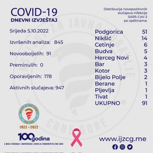 IJZCG: Još 91 novozaraženi kovidom