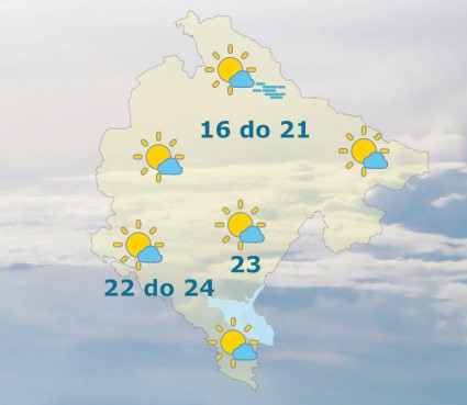 Danas će u Crnoj Gori biti pretežno sunčano, uz povremeno umjerenu do povećanu visoku oblačnost. Jutro hladno, na sjeveru ponegdje po kotlinama sa maglom. Vjetar slab do umjeren uglavnom južnih smjerova. Najviša dnevna temperatura vazduha od 16 do 25 stepeni, saopšteno je iz Zavoda za hidrometeorologiju.