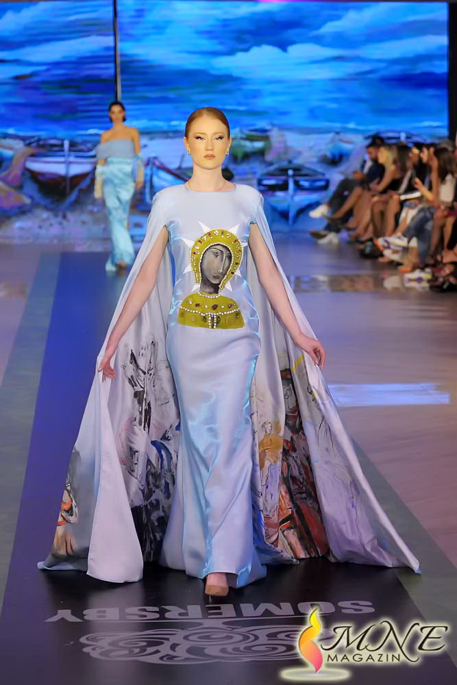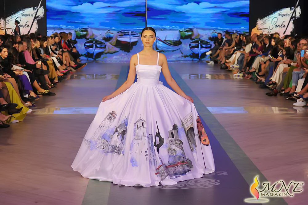 Senka Tujković predstavila se interesantnom kolekcijom ,,Crna Gora na satenu”. Reviju je otvorila Milica Marković u crvenoj haljini sa crnogorskim grbom. Na bimu je stajala slika mora i čamaca, a ispred su izlaziile manekenke u oslikanim haljinama sa crnogorskim motivima – plave su za pozadinu imale planine i cvijeće, bijele Njegošev ,,Gorski vijenac”, primorje, Lovćen, crne Crnogorku u narodnoj nošnji, a nježno plava ikone, sa ikonom Presvete Bogorodice Filermose kao glavnom.