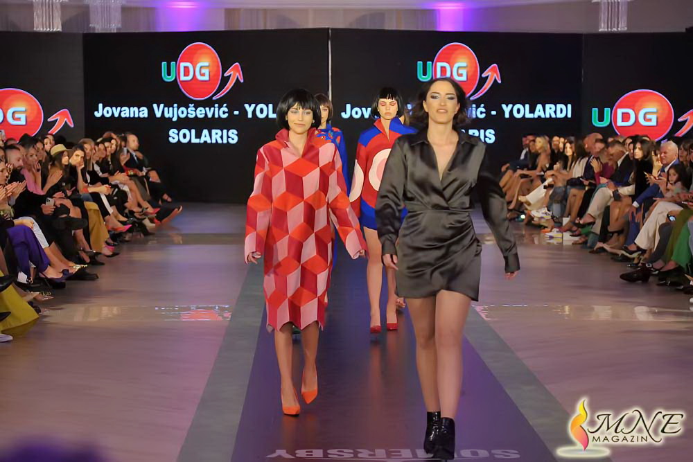 Jovana Vujošević predstavila se kolekcijom Solaris. Preovladavale su kreacije u crveno-plavoj nijansi, uz haljinu sa krugovima i mantil sa optičkom iluzijom.