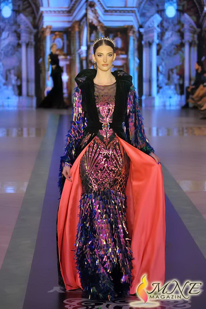 Plaštevi, sjaj, elegancija, pojasevi, pozlata, crna, bijela, zelena, žuta, lavanda na haljinama pravljene su za damu koja zna svoju pravu vrijednost, kraljicu. Poseban aplauz dobile su žene koje su pobijedile u borbi protiv raka dojke. Za kraj, inspirisana Crnom Gorom, Urbanova je ostavila crvenu haljinu poput crnogorske nošnje sa detaljem crnogorskog grba na plaštu.
