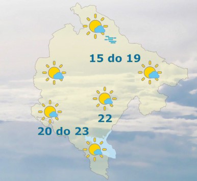 Danas će u Crnoj Gori biti sunčano, povremeno uz malu ili umjerenu oblačnost. Ujutru, na sjeveru po kotlinama magla ili niska oblačnost, koja se ponegdje može zadržati i tokom prijepodneva. Vjetar slab do umjeren, promjenljivog smjera. Najviša dnevna temperatura vazduha od 15 do 23 stepena, saopšteno je iz Zavoda za hidrometeorologiju.