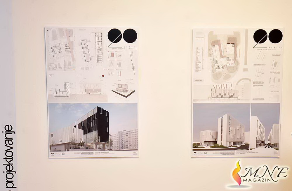 Izložba radova pod nazivom Projekat godine studenata Arhitektonskog fakulteta Univerziteta Crne Gore u Podgorici, upriličena povodom 20 godina studijskog programa arhitekture, otvorena je sinoć u Modernoj galeriji i trajaće do 29. novembra.