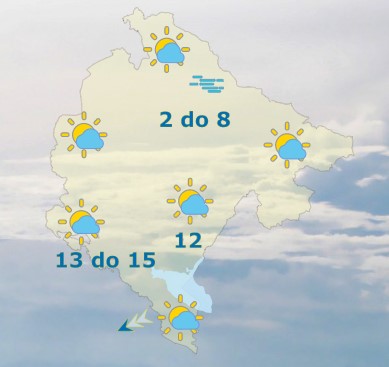Danas će u Crnoj Gori biti promjenljivo oblačno sa sunčanim intervalima. Vjetar slab do umjeren promjenljivog smjera, na krajnjem jugoistoku umjeren do pojačan sjeveroistočni i istočni. Najviša dnevna temperatura vazduha od 2 do 15 stepeni, saopšteno je iz Zavoda za hidrometeorologiju.