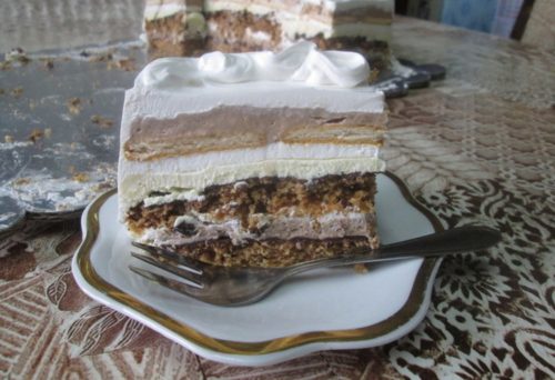 Rernu uključiti da se zagrije na 200 stepeni. U vanglicu staviti mljevenu plazmu, mljevene lješnike, brašno, šećer i prašak za pecivo. Promiješati, pa dodati ulje i gaziranu vodu. Sastojke dobro sjediniti mikserom. Stranice pleha vel. 35 x 25 cm premazati uljem, a dno obložiti pek papirom. Preko papira ravnomjerno rasporediti 50 g krupnije isjeckanog lješnika. Umućeno tijesto sipati preko lješnika i kašikom poravnati. Staviti da se peče oko 15 minuta. Pečenu koricu izvaditi i ostaviti da se ohladi. Ohlađenu koricu prevrnuti na radni sto i skloniti pek papir. Na isti način umutiti i ispeći još jednu koricu. 100 g crne čokolade izlomiti na kockice, dodati 3 kašičice ulja i na pari otopiti (ako treba dodati još malo ulja da čokolada može da se premaže). Rastopljenu čokoladu premazati preko ispečene korice (preko lješnika) i ostaviti da se čokolada stegne. Isto uraditi i sa drugom koricom. Od sojinog mlijeka odvojiti 400 ml, a ostatak zajedno sa 300 g šećera i 4 kesice vanil šećera staviti da prokuva. Puding i gustin sjediniti i razmutiti sa odvojenim mlijekom. Razmućeni puding sipati u provrelo mlijeko i uz neprekidno miješanje skuvati da se zgusne. Skuvani puding skloniti sa vatre, prekriti providnom folijom (foliju direktno staviti na puding) i ostaviti da se ohladi (da bude mlak, ne potpuno hladan). Margarin pjenasto umutiti i dodati u ohlađeni krem. Dobro mikserom sjediniti. Posebno umutiti 100 g sojinog šlaga sa 100 ml gazirane vode, pa i njega dodati u fil. Umutiti sve zajedno, da se dobije kremasta smjesa. Dobijeni fil podijeliti na 1/3 i 2/3 fila. U 1/3 dodati 100 g na pari rastopljene bijele čokolade i 100 g posnog mlijeka u prahu. Mikserom dobro sjediniti. U 2/3 fila dodati 100 g na pari rastopljene crne čokolade i dobro umutiti. Fil sa čokoladom podijeliti na dva jednaka dijela. Fil 2: Posni šlag i gaziranu vodu dobro umutiti. Slaganje torte: Na plato za tortu staviti jednu koricu sa premazanom čokoladom (koja se stegla) – preko korice premazati pola fila sa čokoladom – nanijeti nekoliko kašika šlaga i ravnomjerno rasporediti (vodite računa da vam ostane dovoljno šlaga za premazivanje cijele torte) – ide druga korica sa premazanom stranom na površini – staviti cijeli bijeli fil – šlag – plazma keks u komadu natopljen u sok od pomorandže – druga polovina fila sa čokoladom – ostatkom šlaga premazati cijelu tortu. Tortu možete da ukrasite po svojoj želji. Napravljenu tortu ostaviti u frižider preko noći. Narednog dana isijecite je i poslužite. Torta je toliko ukusna da se svi začude kada čuju da je posna.
