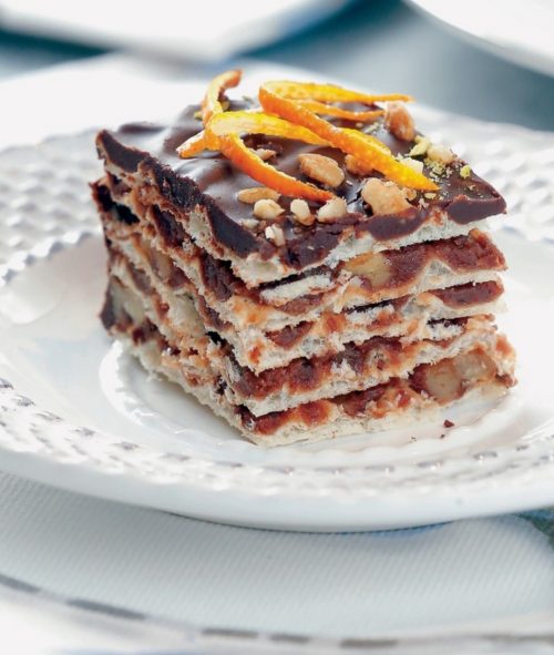 Umutite žumanca sa 300 grama šećera, pa na pari skuvajte gusti krem. Dodajte čokoladu i margarin i, kad se otope, sklonite s vatre. Na tihoj vatri istopite preostali šećer, sklonite s vatre, pa dodajte krem od žumanaca, margarina i čokolade, kao i sjeckane orahe. Dobijenim filom nafilujte listove oblandi. Zamotajte oblandu u celofan i pritisnite težim predmetom da se zalijepi.