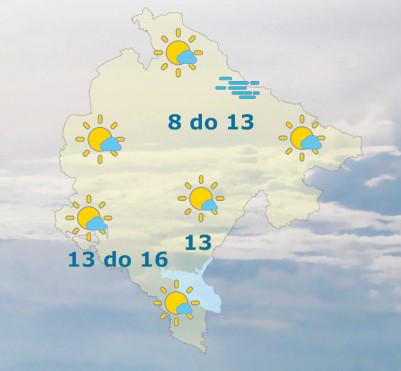 Danas će u Crnoj Gori biti pretežno sunčano, povremeno uz malu do umjerenu oblačnost. Na sjeveru, tokom jutra ili prijepodneva, po kotlinama magla. Vjetar slab do umjeren, promjenljivog smjera. Najviša dnevna temperatura vazduha od 9 do 16 stepeni, saopšteno je iz Zavoda za hidrometeorologiju.