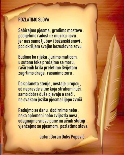 Goran Duks Popović prvi je crnogorski pjesnik čija će se pjesma ,, Pozlatimo slova” naći u svemiru. Naime, ništa od ovoga ne bi se dogodilo da Popovićev sin Andrija nije uslikao očevu pjesmu i poslao je astronomskom društvu Montenegro Space Recearsh i njihovim partnera iz SESA ( svemirska asocijacija jugoistočne evrope ), a preko projekta ” Šaljemo dječiju maštu u svemir”.