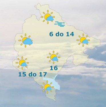 Danas će u Crnoj Gori biti sunčano, uz povremeno malu do umjerenu oblačnost. Na sjeveru po kotlinama magla koja se ponegdje može zadržati tokom većeg dijela dana. Vjetar slab do umjeren, uglavnom, južnih smjerova. Najviša dnevna temperatura vazduha od 6 do 17 stepeni, saopšteno je iz Zavoda za hidrometeorologiju.