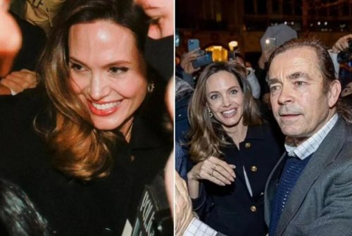 Obezbjeđenje joj je pomoglo da se kreće kroz gomilu, a onda se zaustavila i družila sa fanovima. Inače, početkom ovog mjeseca počele su se širiti glasine da je u ljubavnoj vezi sa glumcem Paulom Mescalom. Viđeni su u jednom londonskom kafiću, a pridružila im se i njena kćerka Shiloh.