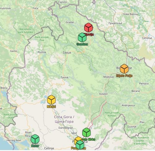 Nikšić i Podgorica su u žutoj, srednjoj zoni.