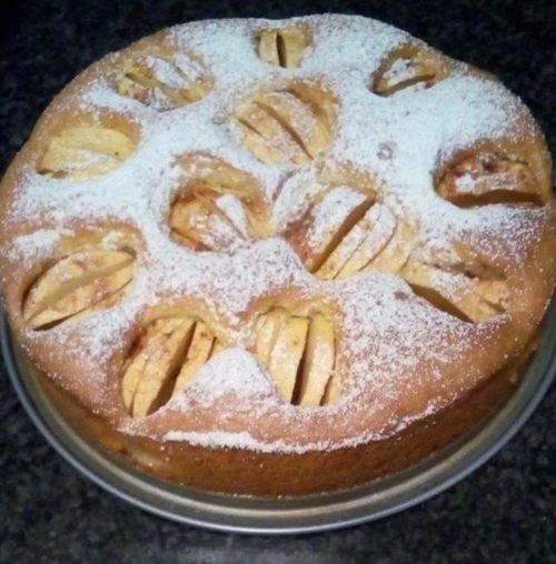 Kalup za kolače namazati sa malo putera. Jabuke oljuštiti i isjeći na četvrtine, s tim da se na svakoj četvrtini naprave još tri-četiri plitka reza, kao na fotografiji. Puter ili margarin pjenasto mutiti sa prah šećerom i vanilom dok masa ne postane pjenasta. Dodavati jedno po jedno jaje neprestano muteći masu još oko dva minuta. Dodati naribanu limunovu koricu i mlijeko. Pomiješati brašno sa praškom za pecivo i dodati lagano u umućenu masu, pa lagano promiješati. Ovako pripremljenu masu istresti u podmazan kalup, a odozgo poređati unaprijed pripremljene jabuke. Peći na 175 stepeni 45 minuta. Ohladiti i posuti samljevenim vanil šećerom.