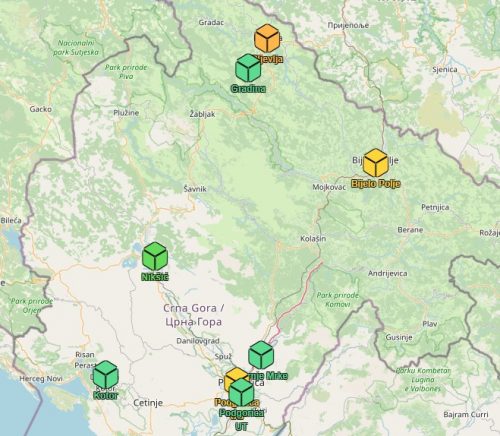 Bijelo Polje i Podgorica u sedam sati bili su u žutoj, srednjoj zoni.