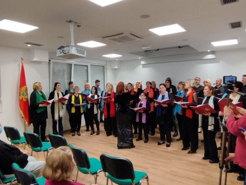 Veoma emotivan bio je sam početak kada je cijela sala, na nogama, sa po kojom suzom u očima i uzdasima, otpjevala himne Crne Gore i Jugoslavije – Oj svijetla majska zoro i Hej Sloveni. Posebno emotivno je bilo vidjeti one u osmoj ili devetoj deceniji, koji su, ne tražeći pomoć osoblja, ustajali iz kolica kojima se pomažu prilikom kretanja, i pozdravljali himne. Hor, pod dirigentskim vođstvom prof. Zoje Đurović, bio je veoma raspoložen, raspjevan i razigran, šaljući i razmjenjujući sa publikom najpozitivnije emocije.