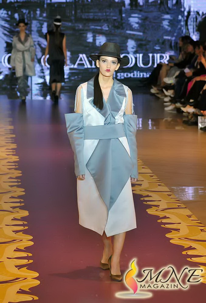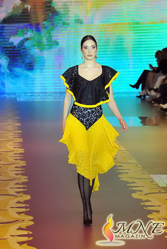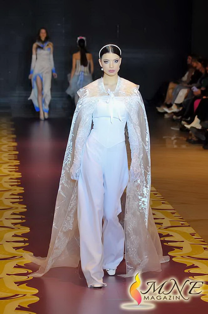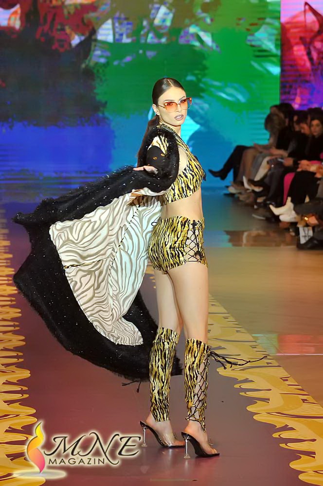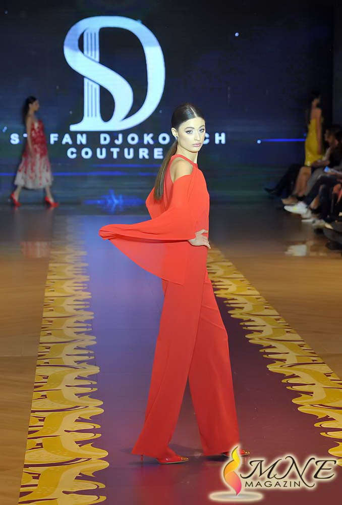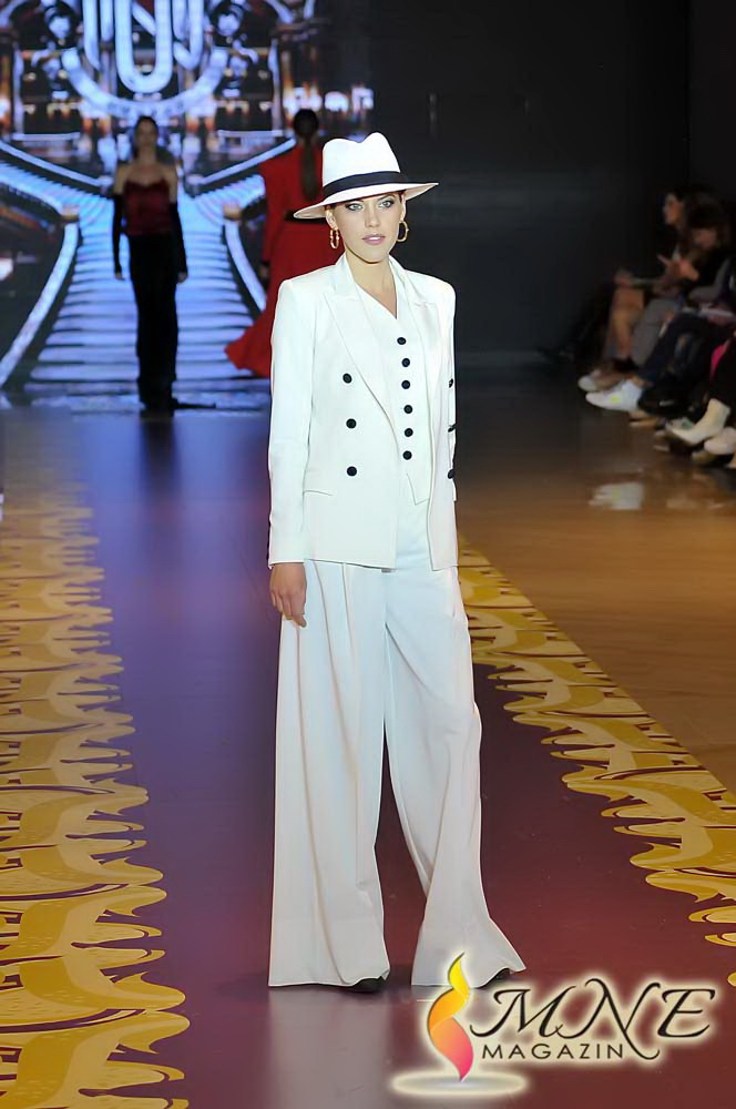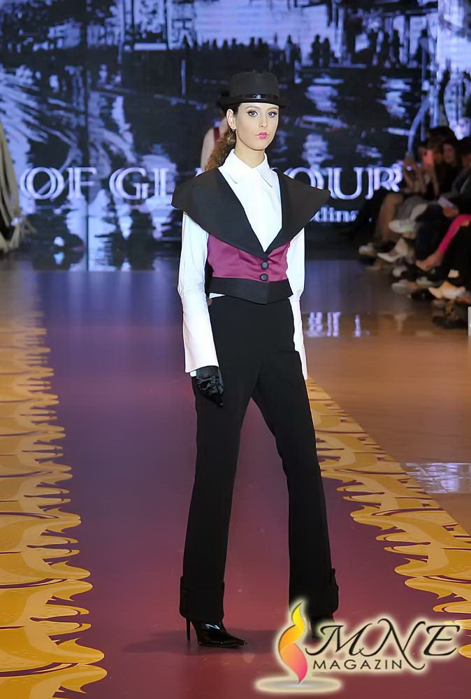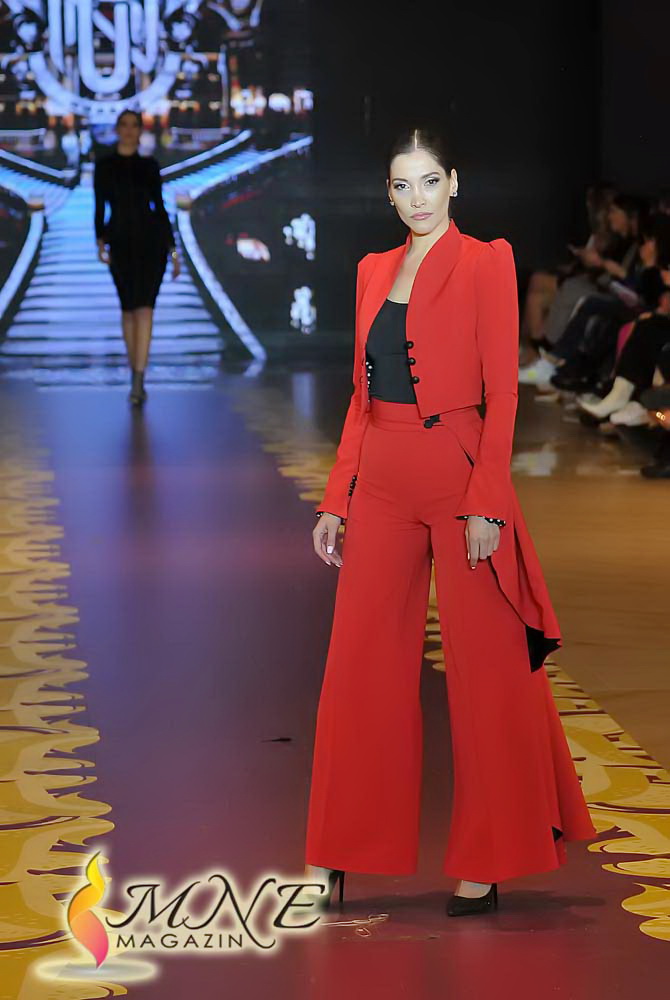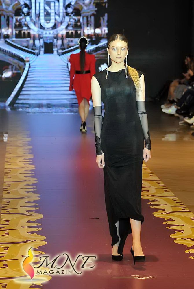 Manekenke su pistom šetale uz numere ,,Your Heart is as Black as Night” i ,,Feeling Good”, a dominirale su crna i crvena boja – crveni komplet sa crnom pozadinom, crvena haljina sa crnim pojasom, crna uska haljina, animal print, ali i predivni bijeli kompleti sa lepršavim pantalonama i bijelim kaputom. Odjevne kombinacije upotpunile su crne rukavice, tijare, šeširi i minđuše.