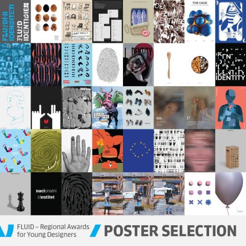 Izložba „Fluidni identiteti“ prikazaće selekciju radova sa ovogodišnjeg konkursa za mlade dizajnere u kategoriji plakat (FLUID – Regional Poster Award for Young Designers). Od ukupno pristigle 192 prijave na pomenutom konkursu, žiri je selektovao 39 radova iza kojih stoji 35 autora i autorki. Na otvaranju ove izložbe biće upriličena dodjela nagrada. Cilj konkursa je podsticanje mladih autora iz regona da istražuju angažovane teme i da kroz dizajnerske forme izraze svoj stav. Nagrađeni radovi na prošlogodišnjem regionalnom konkursu za mlade dizajnere biće predstavljeni na izložbama FLUID (LEGO ERGO SUM) Awards 2022 u kategorijama plakat i fanzin.