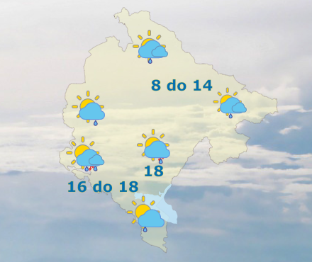 Danas će u južnim predjelima Crne Gore biti promjenljivo oblačno, prijepodne više sunčanih intervala, a poslijepodne mjestimično kiša ili pljusak sa grmljavinom. Na sjeveru umjereno do potpuno oblačno, povremeno sa kišom. Vjetar slab do umjeren, promjenljivog smjera. Najviša dnevna temperatura vazduha od 8 do 20 stepeni, saopšteno je iz Zavoda za hidrometeorologiju.