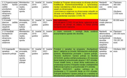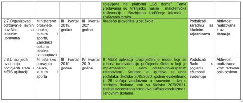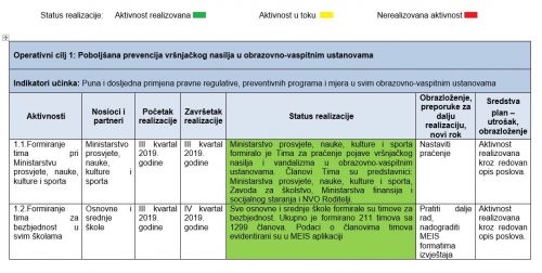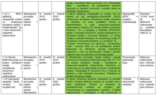 – U MEIS aplikaciji unaprijeđen je modul, koji se odnosi na rad pedagoško-psiholoških službi, evidencijom slučajeva vršnjačkog nasilja. Kreirano je uputstvo za unos podataka. Modul je implementiran u svim obrazovno-vaspitnim ustanovama. Unijet je 191 slučaj nasilja u osnovnim školama i 97 u srednjim u školskoj 2019/2020. godini. U školskoj 2020/2021. godini evidentirano 47 slučajeva nasilja u osnovnim školama i 21 slučaj nasilja u srednjim školama i to vršnjačkog nasilja 35 slučajeva u osnovnim školama, a u srednjim 14 – navodi se u izvještaju.
