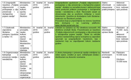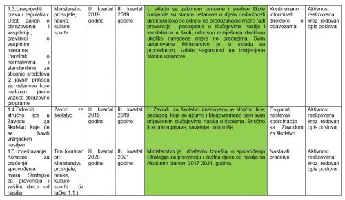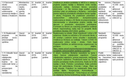 ustanovama u Crnoj Gori s Akcionim planom 2019-2021. godine, koje je dostavilo Ministarstvo prosvjete, nauke, kulture i sporta i koji je označen stepenom tajnosti „INTERNO”.