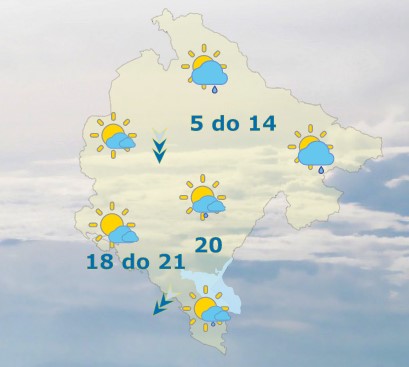 Danas će u Crnoj Gori tokom jutra i prijepodneva u južnim i centralnim predjelima biti prestanak padavina i postepeno razvedravanje. Na sjeveru promjenljivo oblačno, mjestimično sa kišom, a u planinskim predjelima kratkotrajno sa susnježicom i snijegom, uglavnom tokom jutra i prijepodneva. Vjetar povremeno umjeren do pojačan, sjevernih smjerova. Najviša dnevna temperatura vazduha od 5 do 21 stepen, saopšteno je iz Zavoda za hidrometeorologiju.
