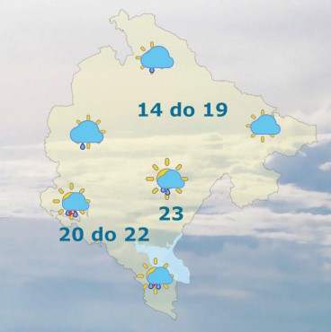 Danas će u Crnoj Gori prijepodne biti promjenljivo oblačno sa sunčanim intervalima. Poslijepodne povećanje oblačnosti, ponegdje moguća kiša, a tokom noći kiša, pljuskovi i grmljavina, uglavnom, u južnim i centralnim predjelima. Vjetar slab do umjeren, povremeno i pojačan, južni i istočni. Najviša dnevna temperatura vazduha od 15 do 25 stepeni, saopšteno je iz Zavoda za hidrometeorologiju.