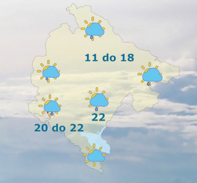 Danas će u Crnoj Gori biti promjenjivo oblačno, mjestimično slaba kiša, lokalno i pljusak. Tokom dana su ponegdje mogući i kraći sunčani periodi. Vjetar slab do umjeren sjevernih smjerova, mjestimično pojačan, uglavnom još tokom prijepodneva. Najviša dnevna temperatura vazduha od 11 do 23 stepena, saopšteno je iz Zavoda za hidrometeorologiju.