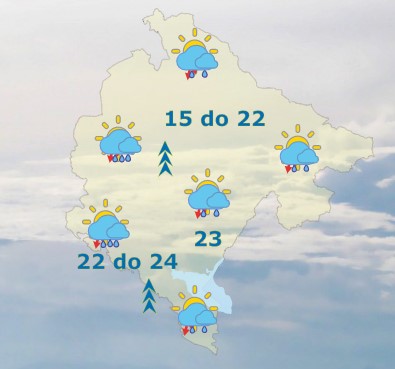 Danas će u Crnoj Gori biti promjenljivo do potpuno oblačno, povremeno kiša ili pljusak praćen grmljavinom. Duvaće mjestimično umjeren do jak, ponegdje na udare i veoma jak, južni i jugoistočni vjetar. Najviša dnevna temperatura vazduha od 15 do 24 stepena, saopšteno je iz Zavoda za hidrometeorologiju.