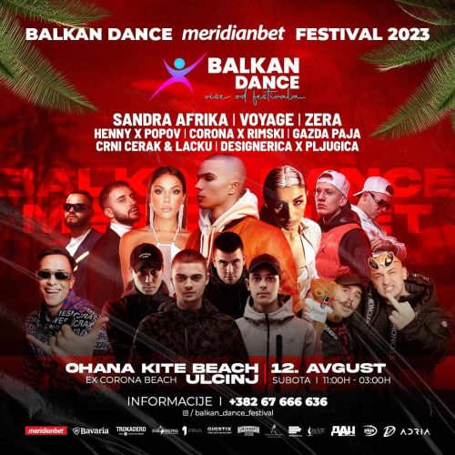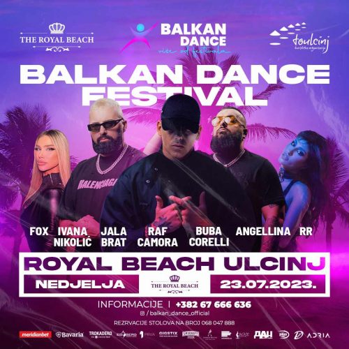 Najveći regionalni festival popularne muzike, ”Balkan Dance Festival’ svoju turneju kreće sa Royal Beach plaže u Ulcinju. Nezapamćeno interesovanje već vlada medju najmladjom populacijom pa su ulaznice po promo cijeni već rasprodate. Izvodjači koji će obilježiti 23. jul su bosanskohercegovački dvojac, Jala Brat i Buba Corelli, dok će glavna zvijezda večeri biti Raf Camora, ultra popularni reper iz Austrije, koji je prije nekoliko dana održao nastup u Beču pred 120 000 posjetilaca. Festivalsko veče, svojim nastupima će upotpuniti Ivana Boom Nikolić, nekadašnja članica grupe Hurricane, kao i Angellina, djevojka andjeoskog glasa. Po prvi put na velikom dogadjaju će se naći reperi iz regiona Fox, i grupa RR.