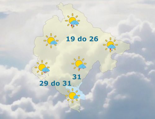 U Crnoj Gori danas će biti malo do umjereno oblačno sa dužim sunčanim intervalima. Uglavnom u jutarnjim satima, ponegdje sa slabom prolaznom kišom, a tokom popodneva uz pojačan razvoj oblačnosti, lokalno je moguć i kratkotrajni pljusak. Na sjeveru po kotlinama, mjestimično, tokom jutra, magla. Vjetar slab do umjeren, uglavnom sjevernih smjerova, u noćnim satima ponegdje i pojačan. Najviša dnevna temperatura vazduha od 19 do 31 stepen, kazali su iz Zavoda za hidrometeorologiju.