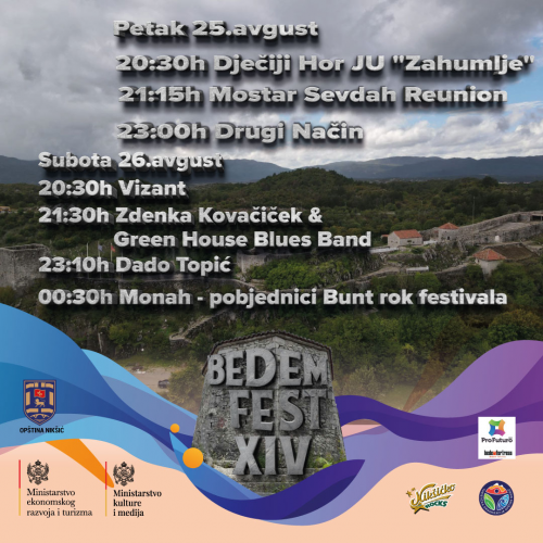 – Kada su svojevremeno vrsne graditeljske ruke brojnih neimara iz svih krajeva Zapadnog Balkana odlukom redžep Paše zidale velelepnu kulu Petrovaču i Nebojšinu kulu koje su svojom monumentalnošću bile oličenje sile i zastrašujuće moći, uzdižući se na brežuljku ukrašavajući krajolik nikšićkog polja, malo ko je tada mogao pretpostaviti i sanjati da će u podnožju kula, kasnije polju suncokreta, a početkom dvijehiljaditih godina prostoru pretvorenom u javni parking, zahvaljujući XIV izdanju Bedem festa biti postavljena pozornica. Prvi put u viševjekovnoj, burnoj i bogatoj istoriji drevnih ostataka Onogošta, podnožje Tvrđave biće mjesto susreta različitih generacija, ljudi iz čitavog regiona, pomiješanih emocija, sjećanja iz prošlih vremena, mjesto nadahnuća, vizija i planova budućnosti zahvaljujući obnoviteljskoj energiji XIV Bedem festa koji će omogućiti jedno neponovljivo putovanje kroz vrijeme, spajajući različite žanrove. Tvrđava će ugostiti antologijske umjetničke duše: Zdenku Kovačiček, Dada Topića, Drugi Način, Mostar Sevdah Reunion, dječiji hor ,,Zahumlje”, Vizant i bend Monah – navodi se u saopštenju organizatora Bedem festa.