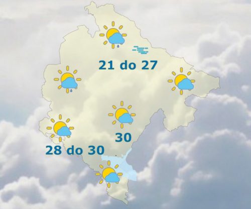U Crnoj Gori danas će biti promjenljivo oblačno sa sunčanim intervalima, a uglavnom od sredine dana, u sjevernim predjelima, ponegdje slaba kiša. Vjetar slab do umjeren, promjenljivog smjera. Najviša dnevna temperatura vazduha od 21 do 30 stepeni, kazali su iz Zavoda za hidrometeorologiju.