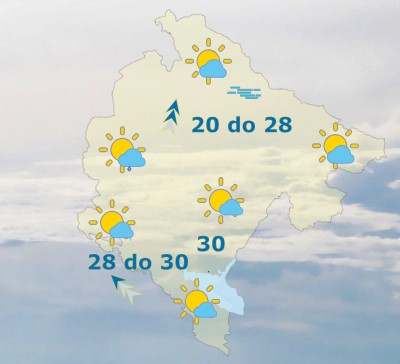 Danas će u Crnoj Gori biti promjenjivo oblačno, sa dužim sunčanim intervalima. Ujutru i poslijepodne ponegdje može biti slabe kratkotrajne kiše. Vjetar umjeren do pojačan, u sjevernim predjelima i na primorju ponegdje jak, južni i jugoistočni. Najviša dnevna temperatura vazduha od 20 do 30 stepeni, saopšteno je iz Zavoda za hidrometeorologiju.