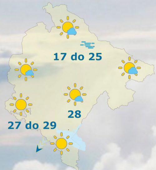 Danas će u Crnoj Gori biti pretežno sunčano. Na sjeveru, ujutru, po kotlinama magla, a u popodnevnim satima slab do umjeren razvoj oblačnosti. Vjetar slab do umjeren, promjenljivog smjera, na jugoistoku povremeno umjeren do pojačan sjeveroistočni. Najviša dnevna temperatura vazduha 17 do 29 stepeni, saopšteno je iz Zavoda za hidrometeorologiju.