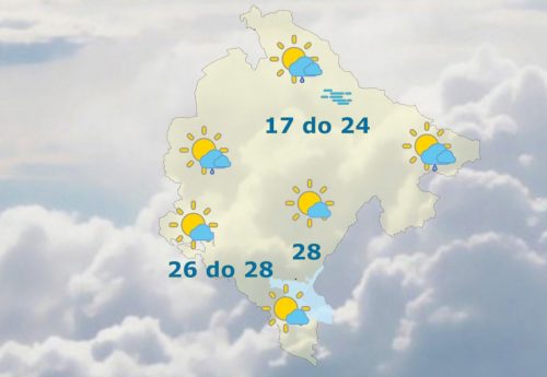 U južnim predjelima Crne Gore danas će biti promjenljivo oblačno sa dužim sunčanim intervalima. Na sjeveru promjenljivo oblačno, prijepodne ponegdje slaba kiša, u drugom dijelu dana i tokom noći lokalno je moguć i pljusak sa grmljavinom. Vjetar slab do umjeren, promjenljivog smjera. Najviša dnevna temperatura vazduha 17 do 28 stepeni, kazali su iz Zavoda za hidrometeorologiju.