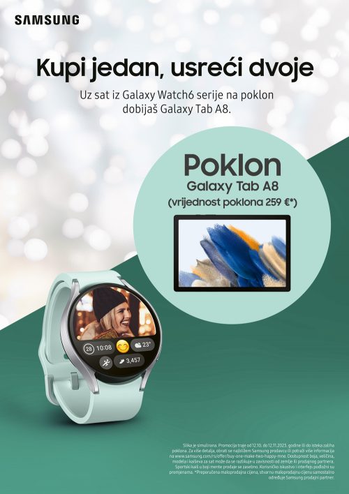 Samsung je pripremio posebnu ponudu gdje uz kupovinu uređaja iz Samsung Galaxy S23 ili Galaxy Z serije na poklon dobijate Galaxy S21 FE pametni telefon, dok uz sat iz Galaxy Watch6 serije na poklon dobijate Galaxy Tab A8. Ponuda traje od 12.10. do 12.11.2023. ili do isteka zaliha. Za više informacija o promociji posjetite link.