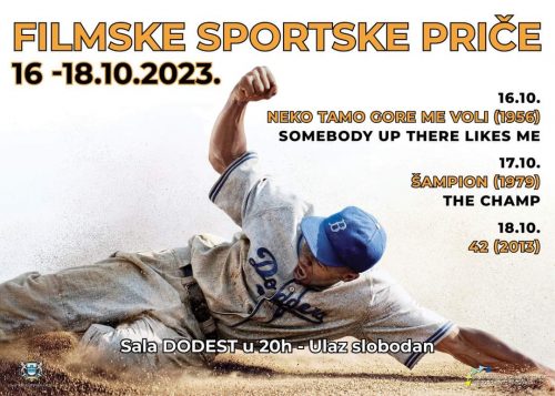 Zanimljive storije o sportu, velikanima sporta i njihovim uspjesima među kojima su i one bazirane na istinitim događajima, biće prikazane u okviru nove revije “Filmske sportske priče” koju filmski program KIC-a “Budo Tomović“ organizuje od 16. do 18. oktobra u sali DODEST, od 20 sati.