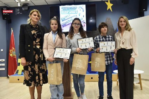 Dobitnicima su nagrade – tri pametna sata, uručile državne sekretarke u Ministarstvu evropskih poslova (MEP) i Ministarstvu prosvjete Milena Žižić i Milijana Vukotić Jelušić.