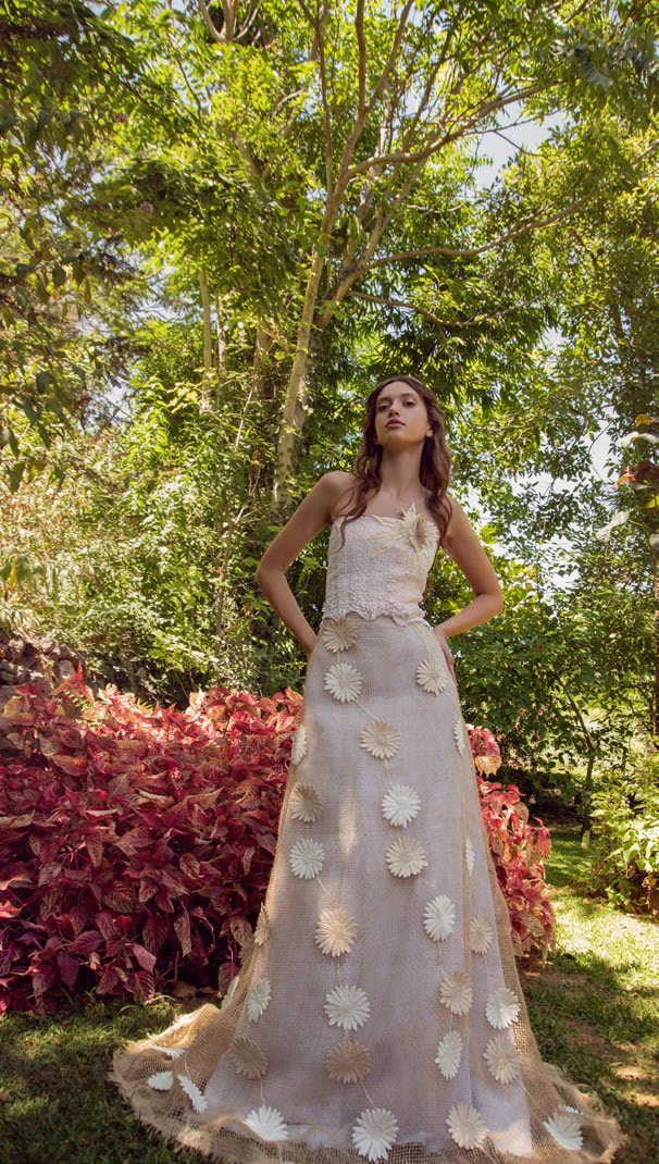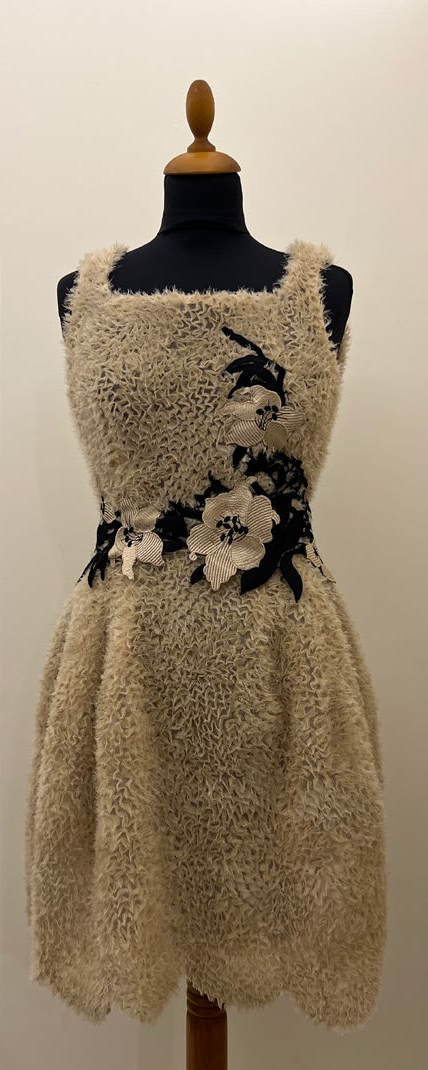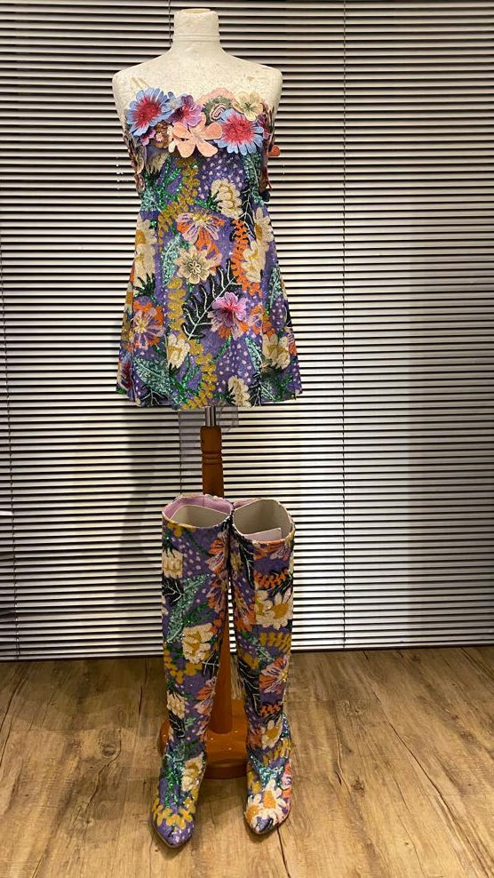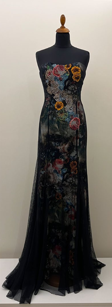Dodaje da su kreacije inspirisane devedesetim sa trodimenzionalnim vezom sa šljokicama i mrežom u potpunosti napravljenom od svaarovski kristala. Vez je ručno izrađen tehnikama tipičnim za oblast Sicilije, gdje ovaj dizajner živi i stvara.