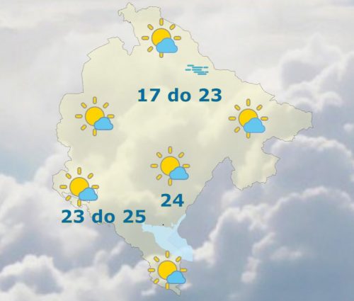 U Crnoj Gori danas će biti pretežno sunčano, od sredine dana mjestimično uz malu do umjerenu, uglavnom visoku oblačnost. Tokom jutra, na sjeveru po kotlinama magla. Vjetar slab do umjeren, uglavnom južnih smjerova. Najviša dnevna temperatura vazduha od 17 do 25 stepeni, kazali su iz Zavoda za hidrometeorologiju.